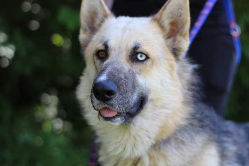 Eros je nemecký ovčiak x huski, 1,5 roka starý. Na pohľad veľký fešák, jeho dušička je však krehká. Pravdepodobne sa nemal veľmi dobre. Prudkých pohybov sa bojí, zvýšeného hlasu taktiež. Eros sa však veľmi rád mazná, hladká, podriemká, poleží, je dobráčisko od kosti. Nemá strážne vlohy.